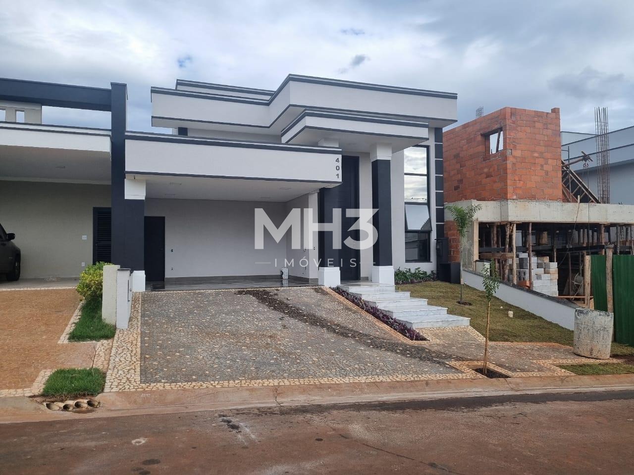 Casa térrea no Santorini Residencial Club em Paulínia. Projeto arquitetônico contemporâneo com terreno de 363,25m², construção de 211,78m² em ambientes integrados e iluminação natural com...