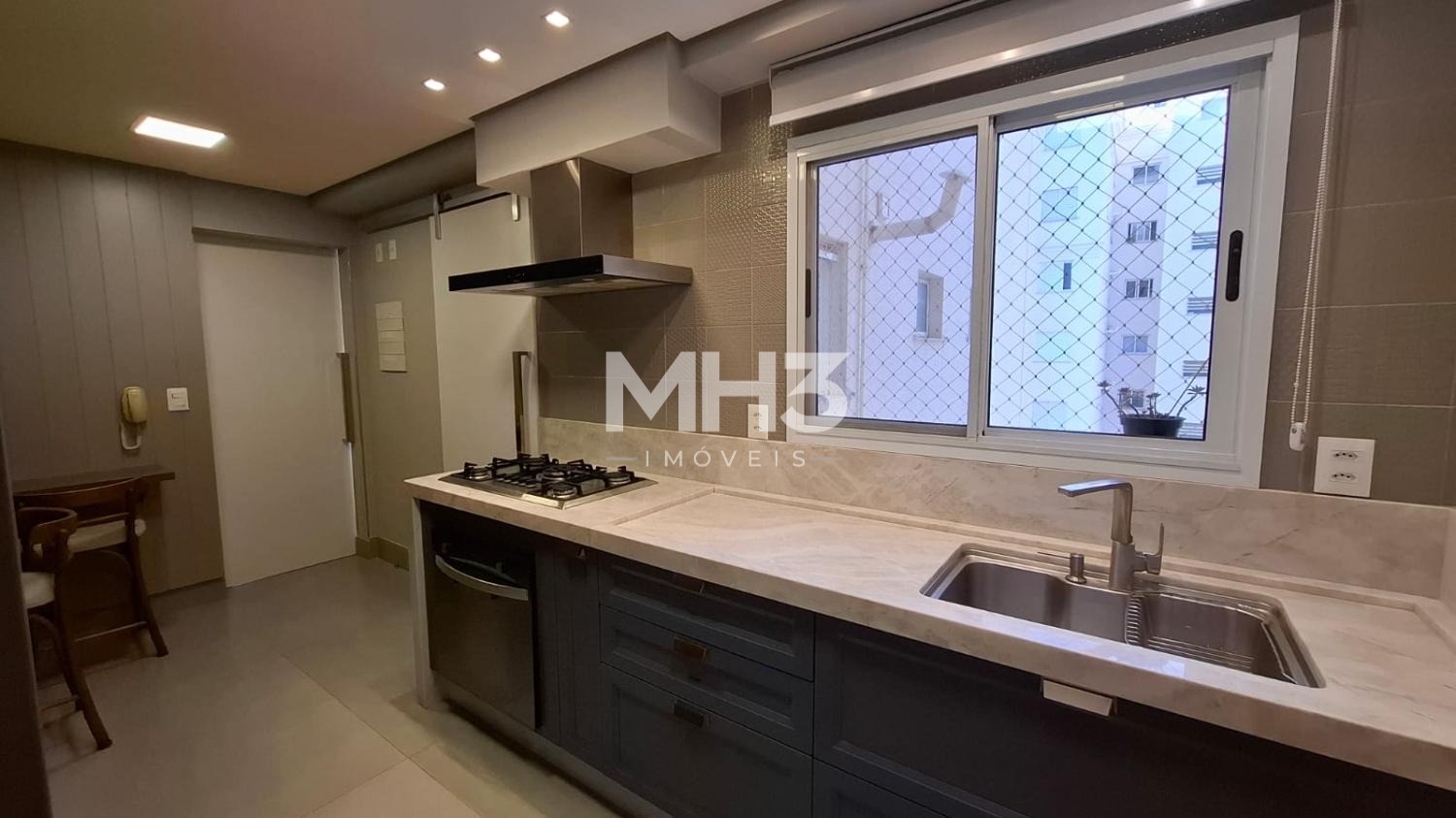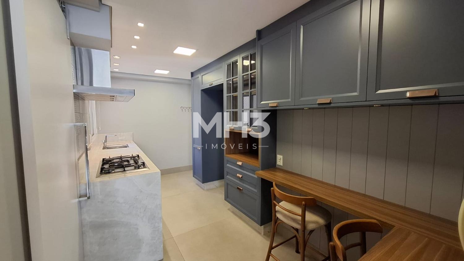 - Cozinha com planejados, fogão cooktop, forno totalmente equipada