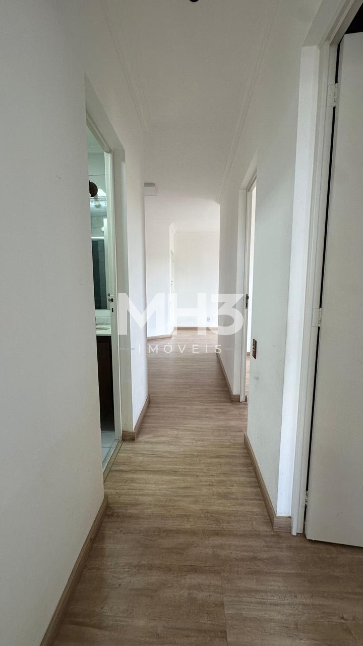 Corredor privativo com banheiro social, 3 dormitórios sendo uma suíte.