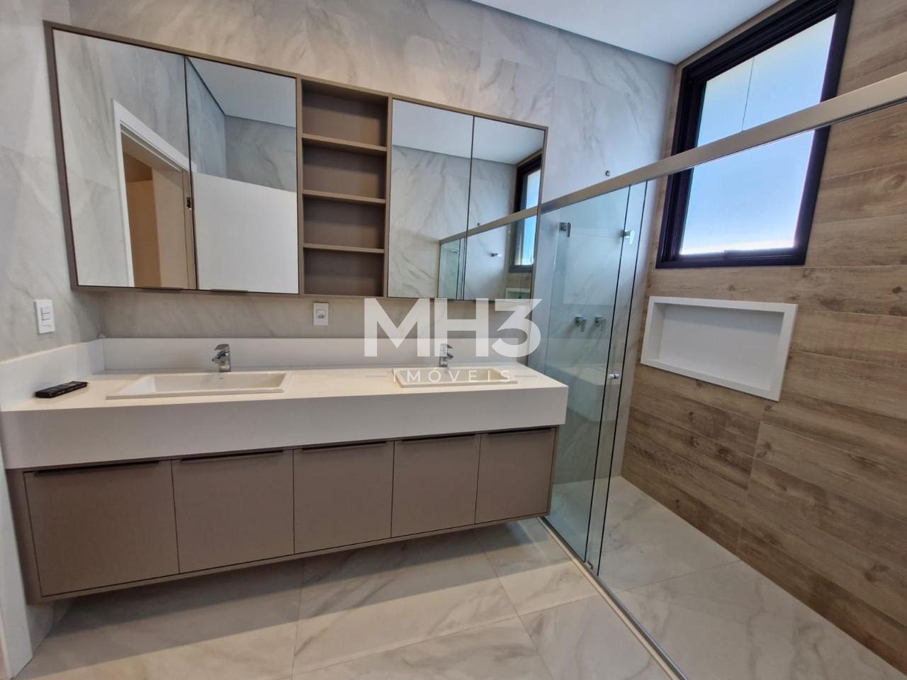 -4 suítes, todas completas com planejados, janelas com persianas automatizadas, piso em madeira, suíte do casal com closet.