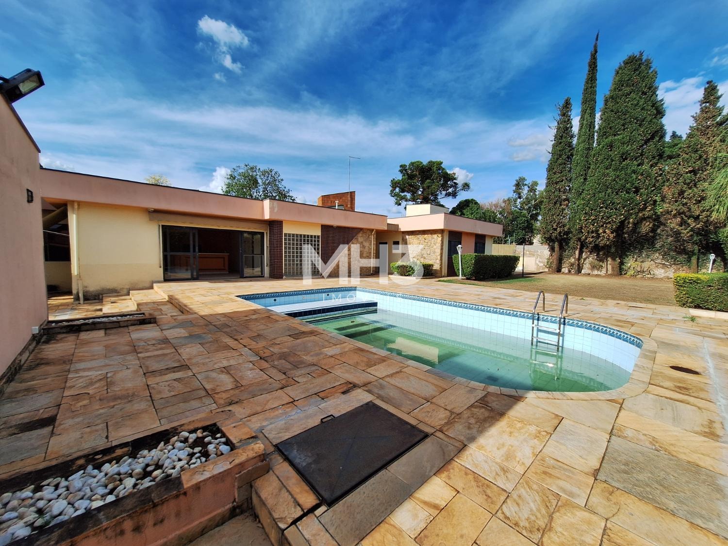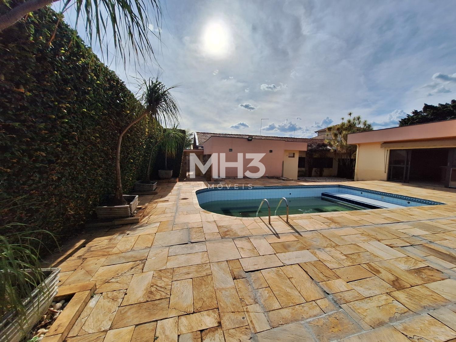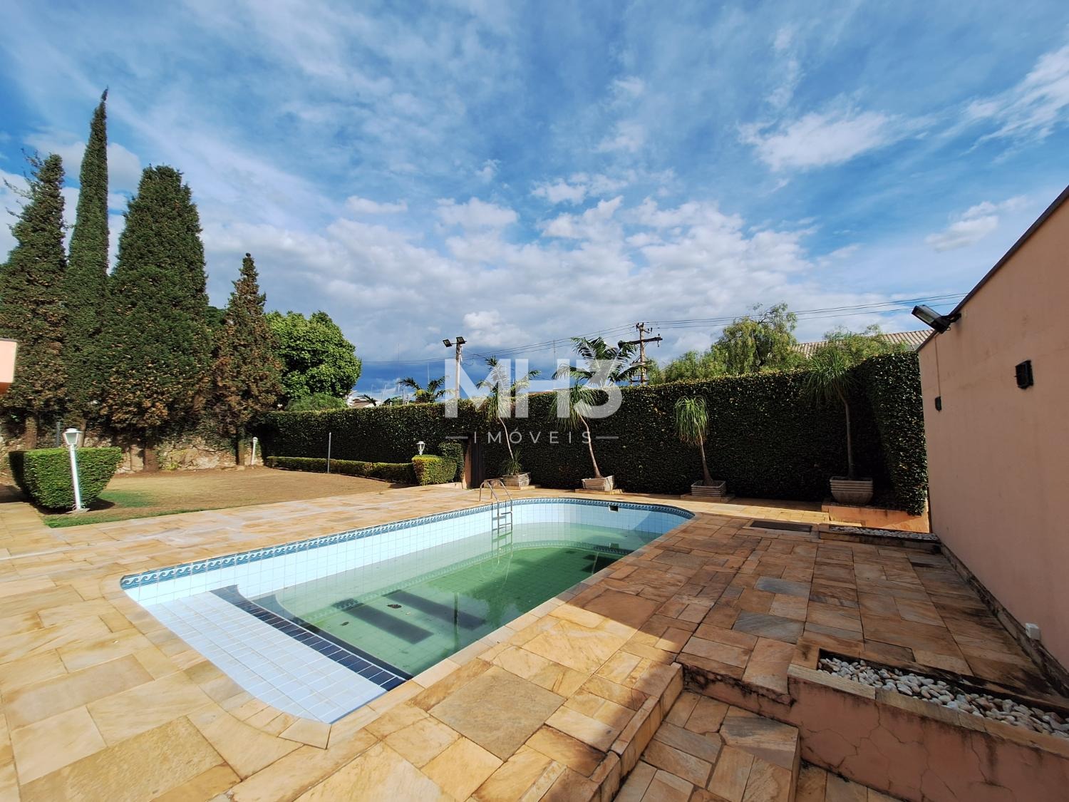 A cereja do bolo é o espaço do quintal todo gramado com uma grande piscina que tem prainha para todos aproveitarem os dias de calor e sol intenso.