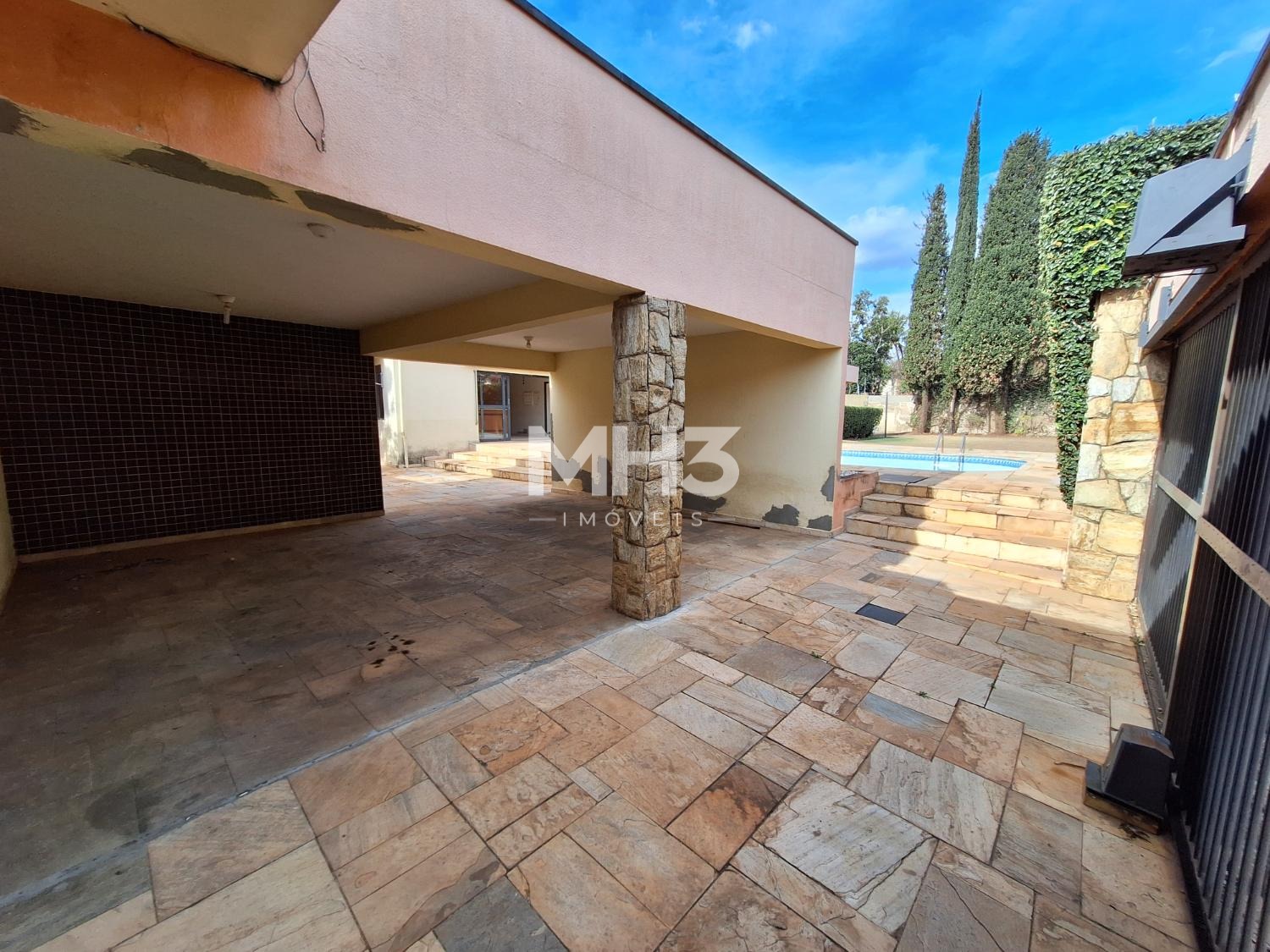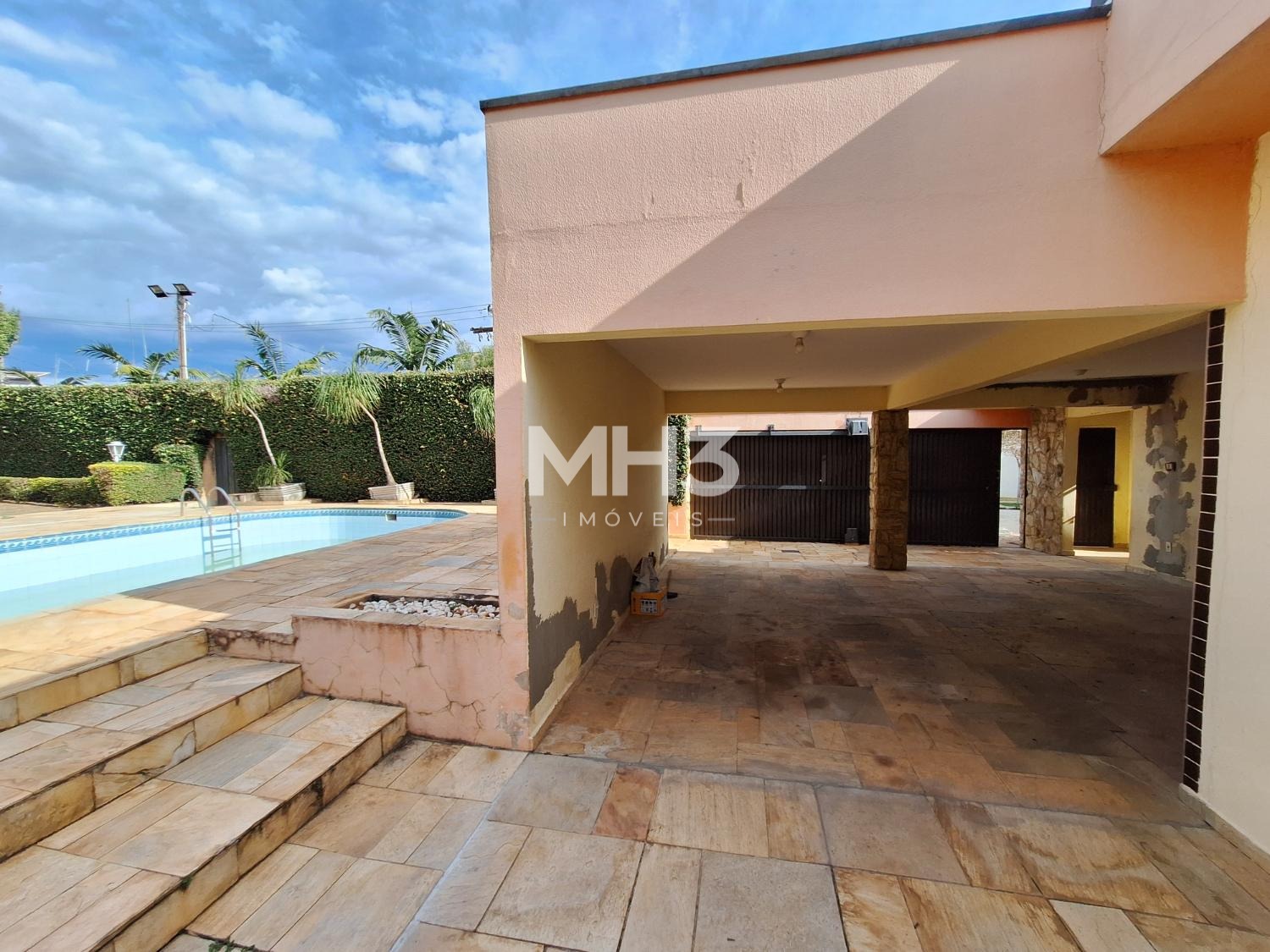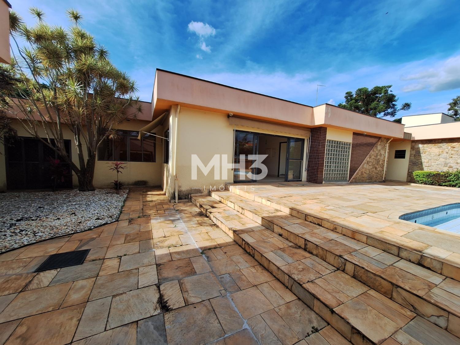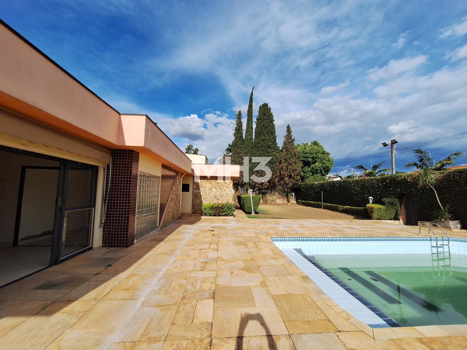 A cereja do bolo é o espaço do quintal todo gramado com uma grande piscina que tem prainha para todos aproveitarem os dias de calor e sol intenso.