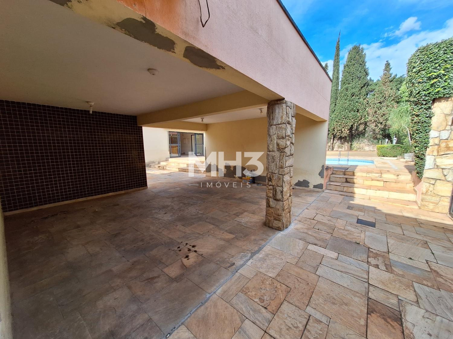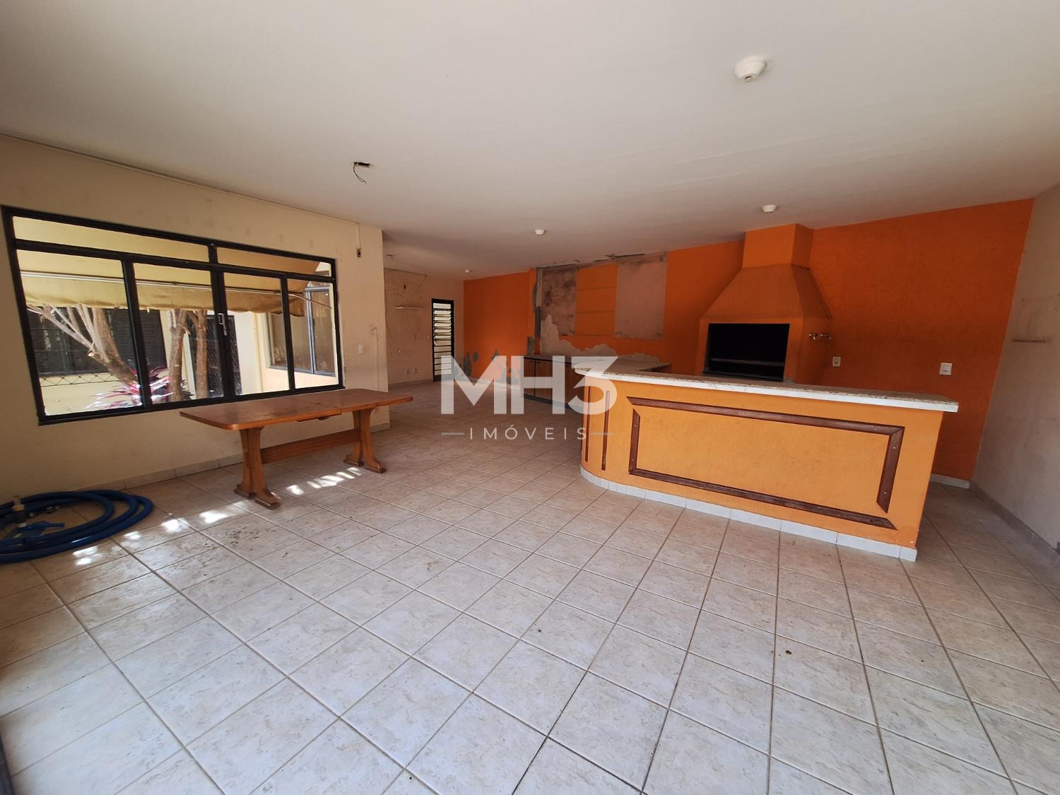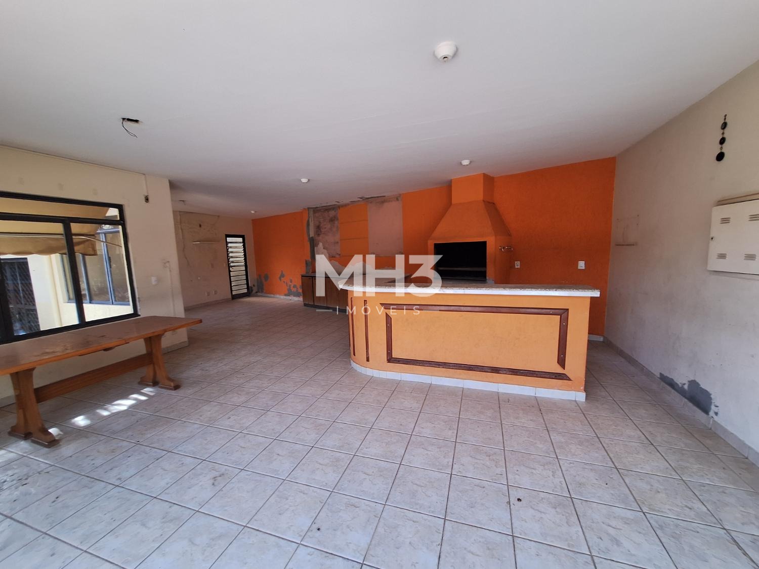 Amplo salão com espaço gourmet com um grande balcão onde tem churrasqueira, pia e área necessárias para seu churrasco, sem contar o amplo salão em vão livre, mais outro salão onde você tem 2 banheiros (fem.mas), mais uma cozinha para suporte a área gourmet.