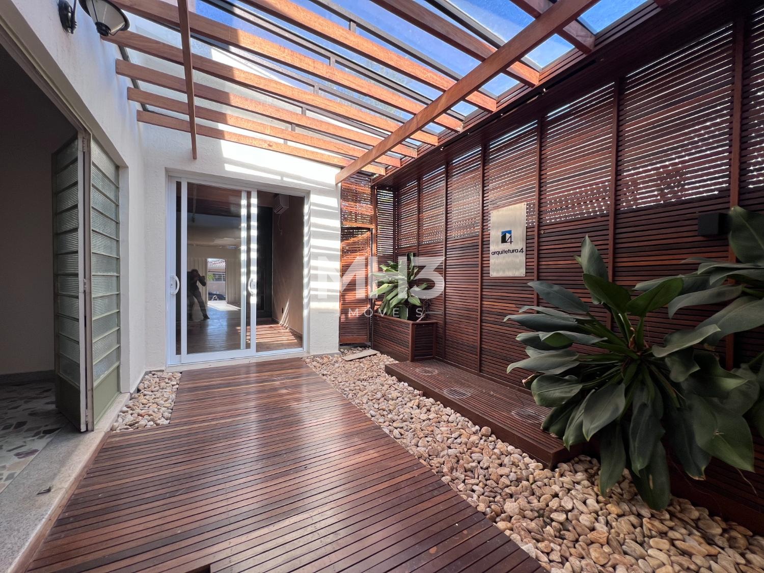 Hall de entrada com jardim, recepção, banheiro, copacozinha, salas e sala de reunião.