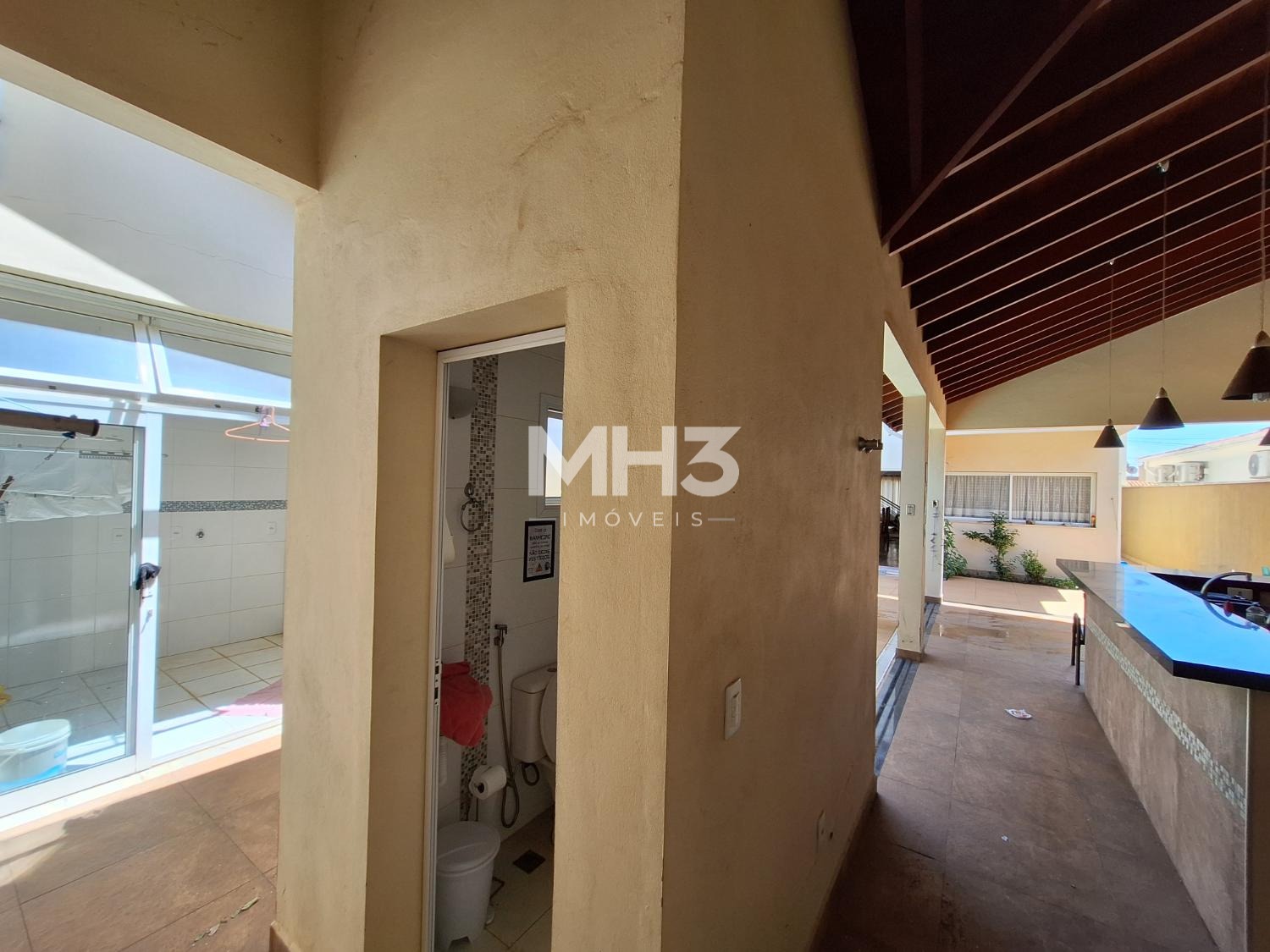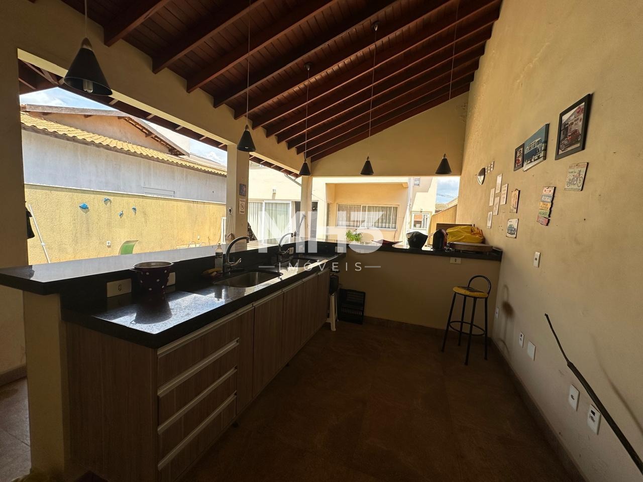 Quintal com área gourmet completa, inclusive dispensa própria, banheiro externo e quarto de apoio para atender área gourmet e piscina