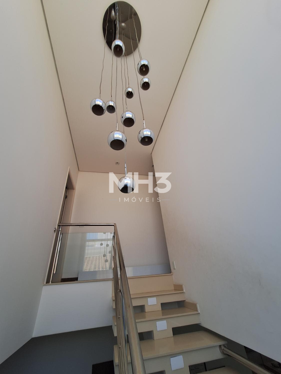 Escada toda em crema marfil (tipo de mármore espanhol, conhecido pela sua tonalidade bege clara e veios suaves em tons mais escuros)
