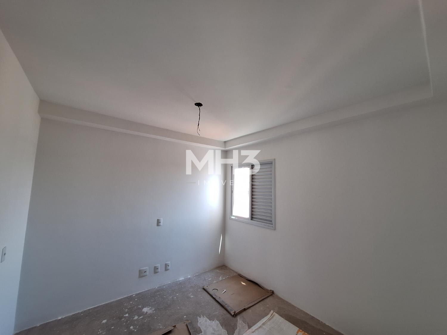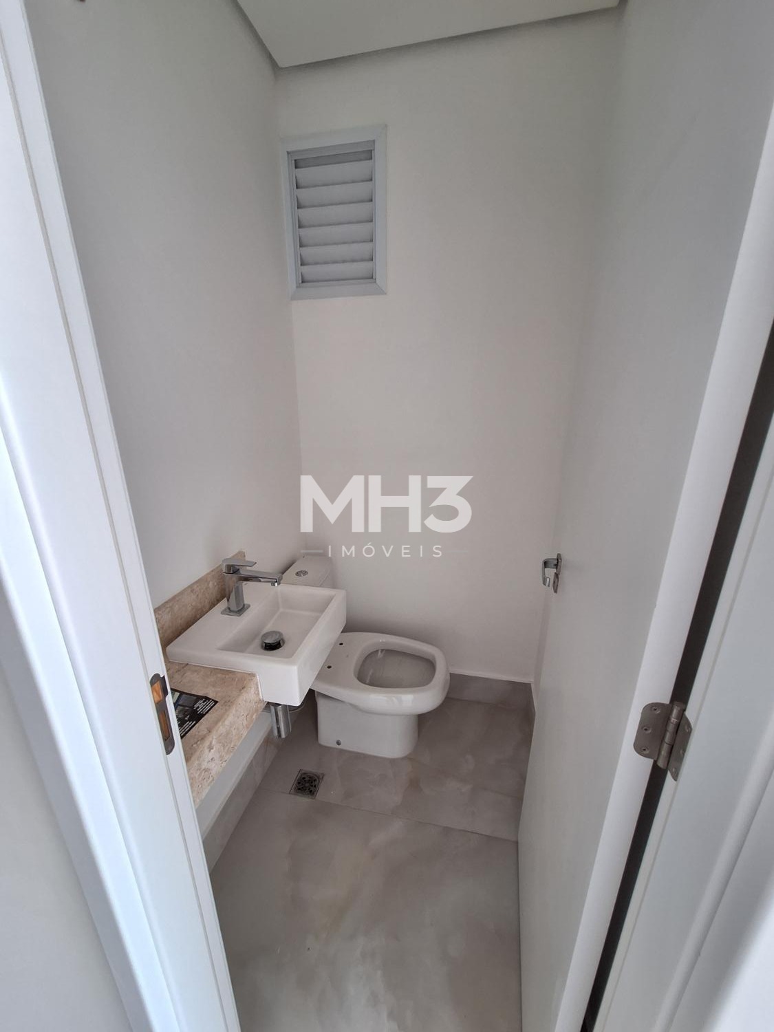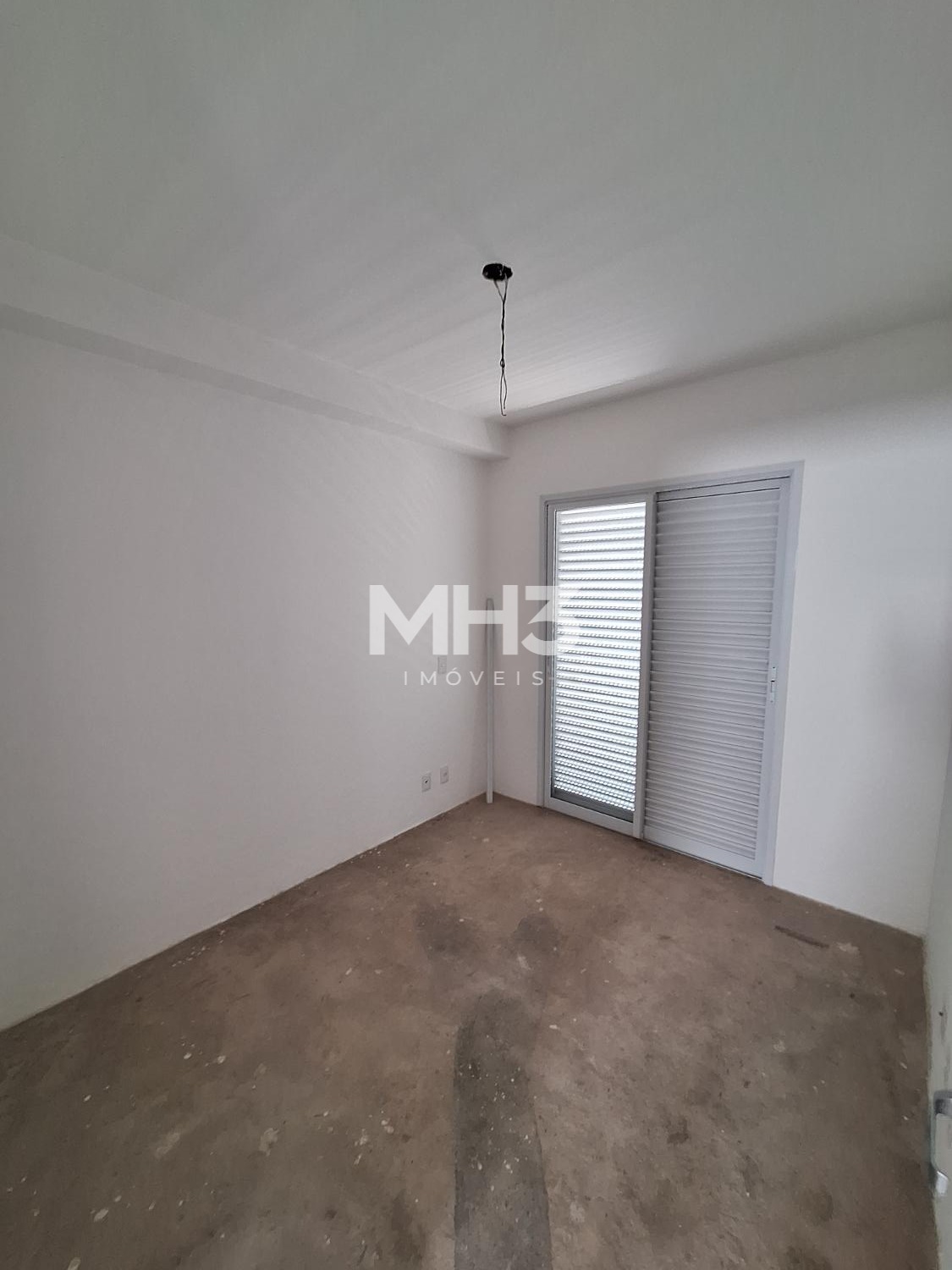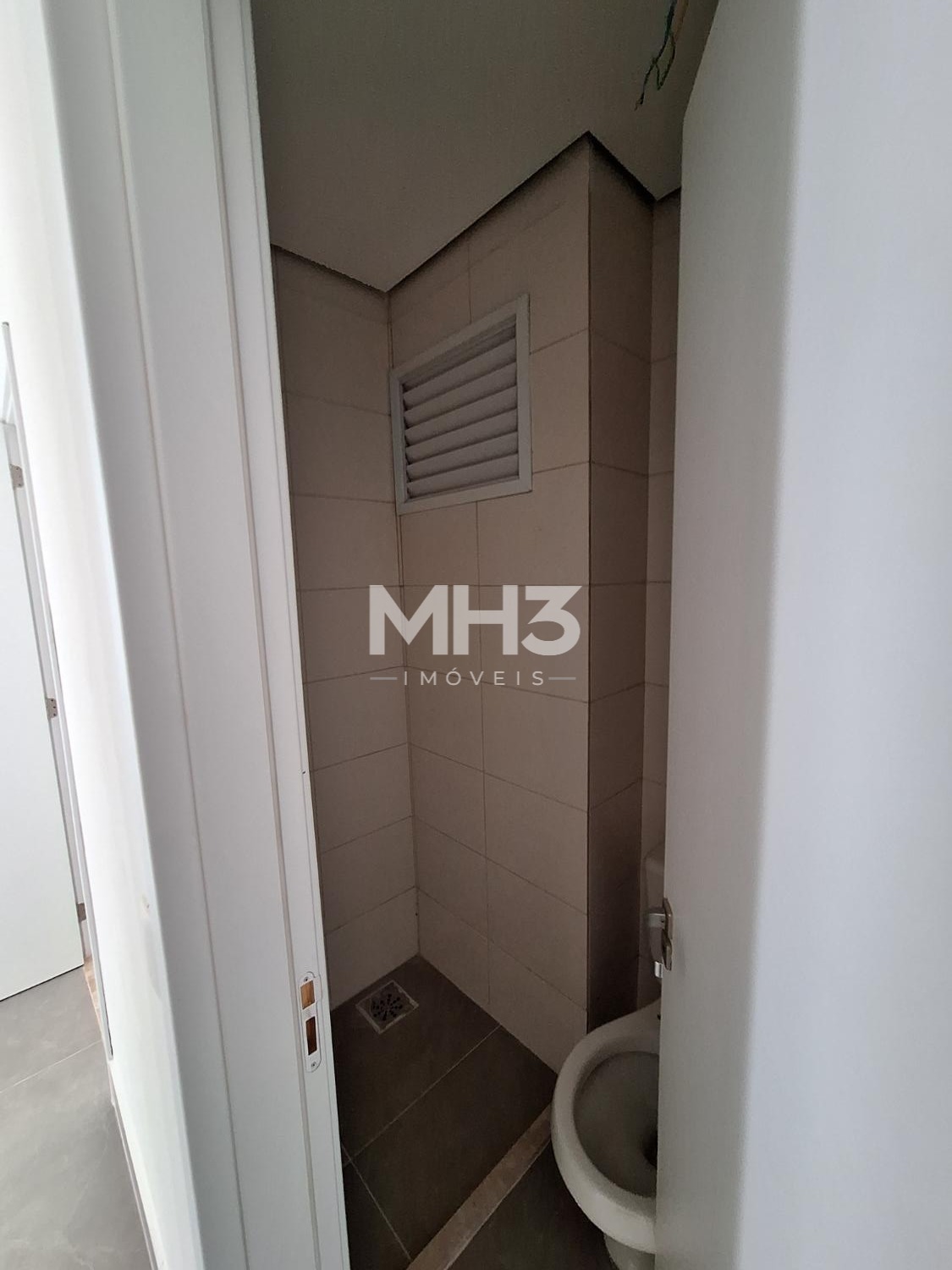 Corredor íntimo, banheiro social e três quartos sendo uma suíte ampla com closet.