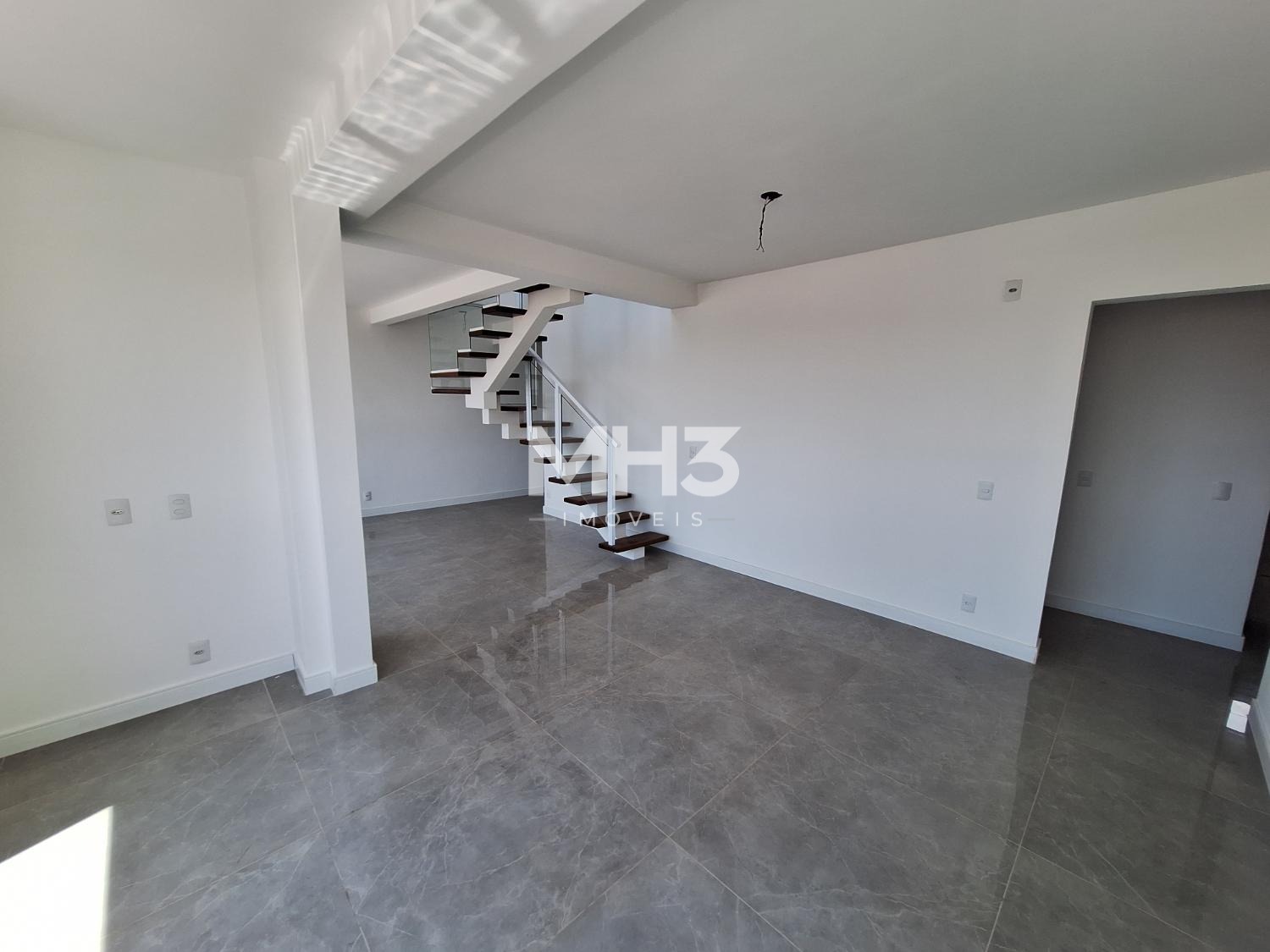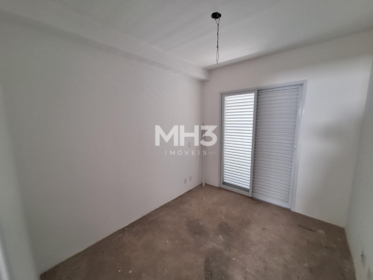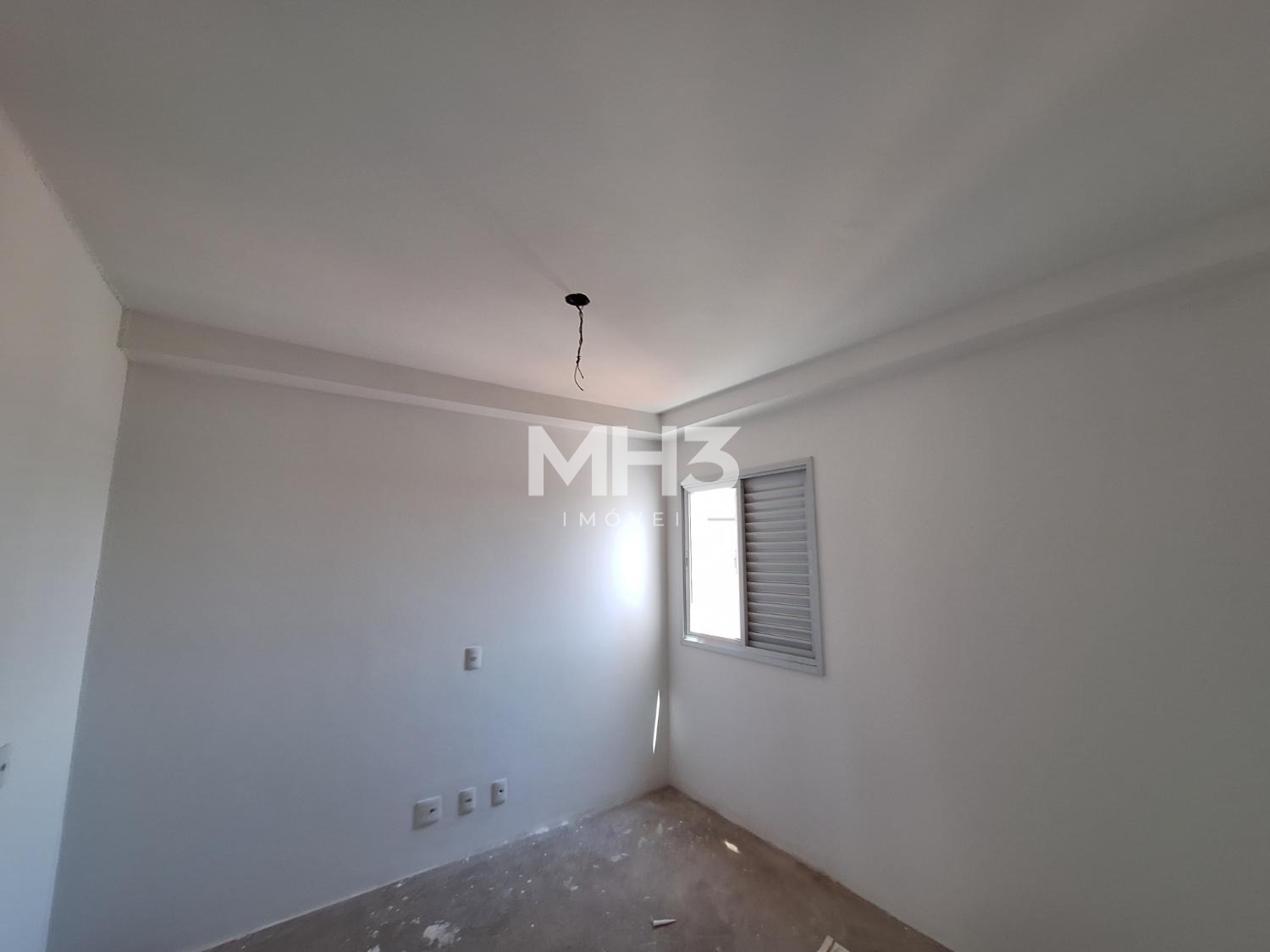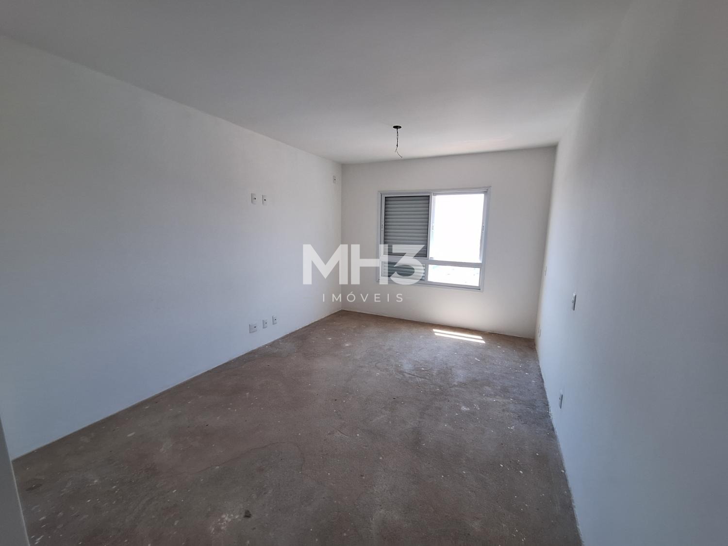 Corredor íntimo, banheiro social e três quartos sendo uma suíte ampla com closet.