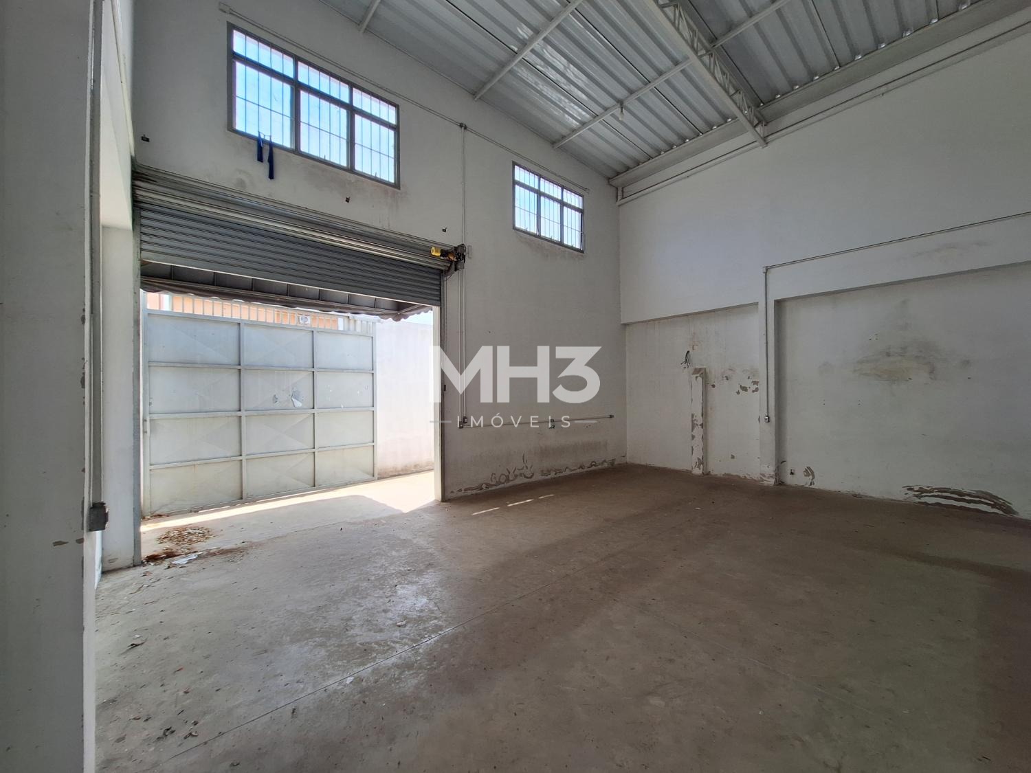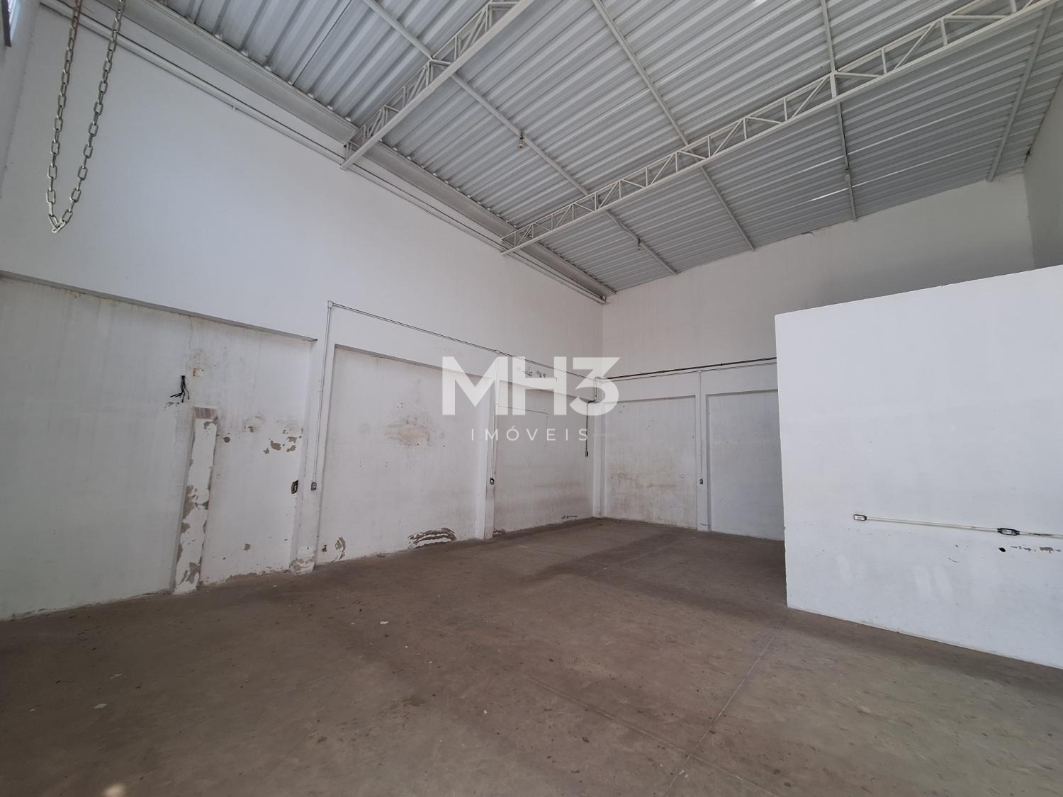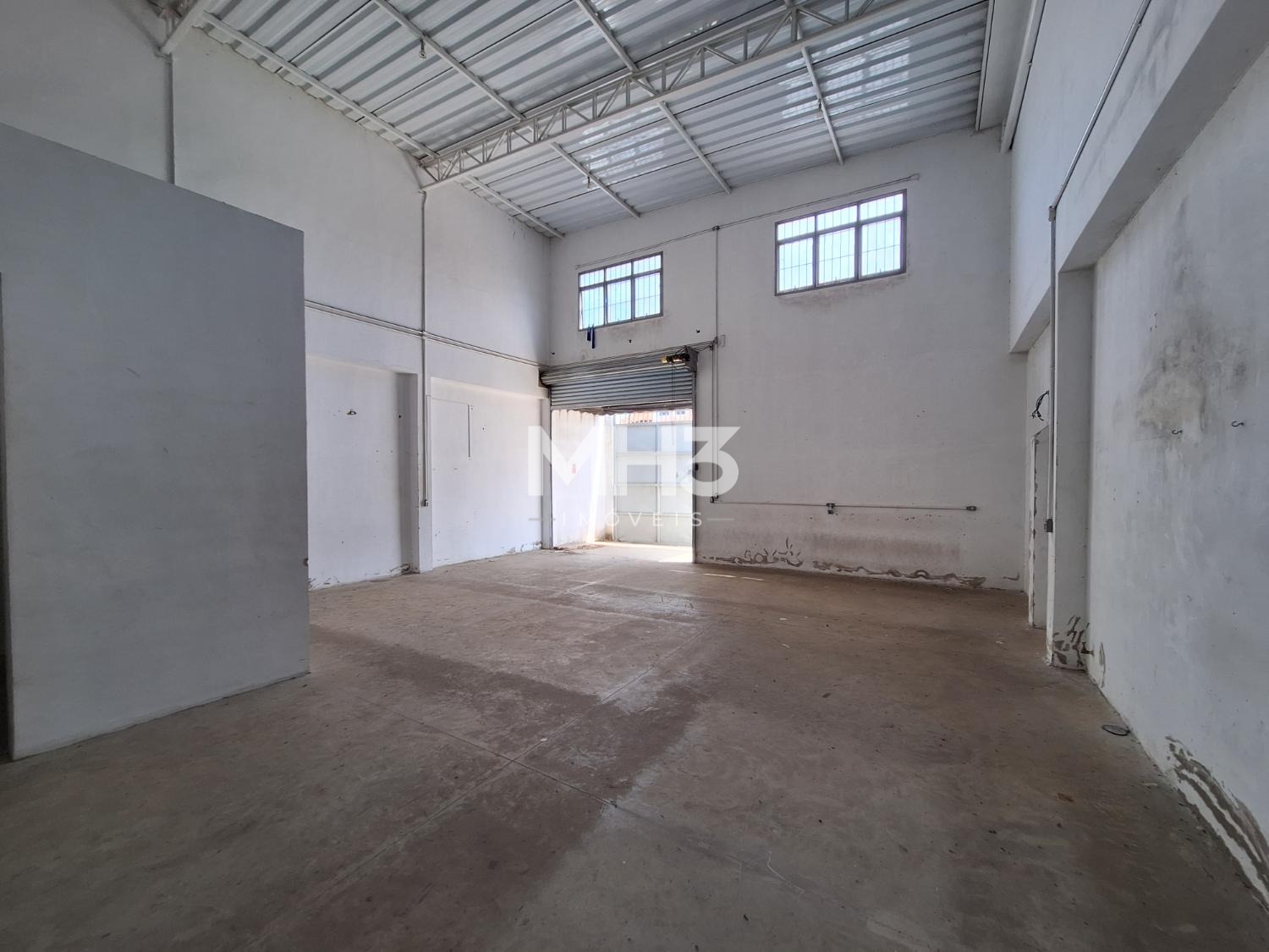 Uma parede do chão ao teto que divide outro galpão, este com aproximadamente 100m², PD de 6m², 2 banheiros (fem/masc), portão eletrônico de acesso para VUC, pequeno quintal e outro portão de ferro para acesso da rua, podendo ficar o portão da rua fechado e do galpão aberto, com privacidade.