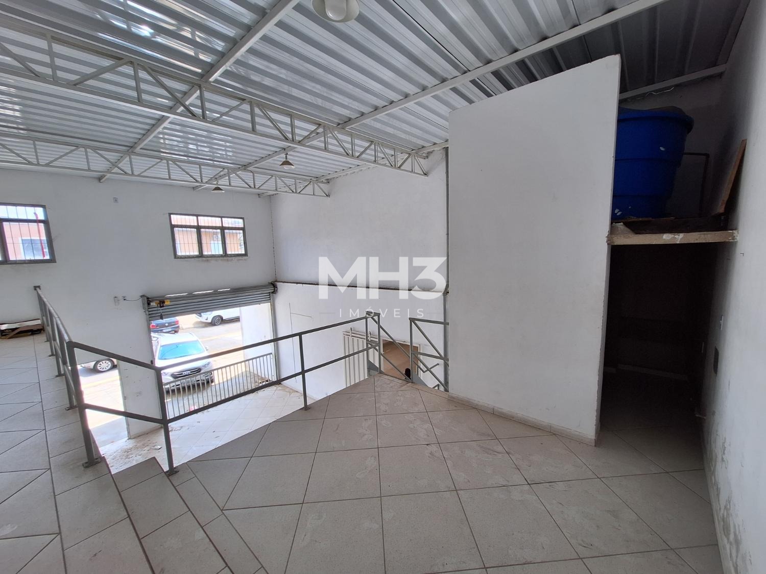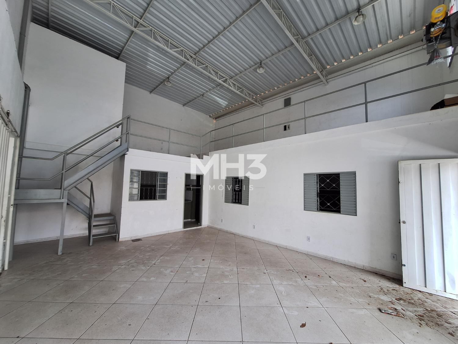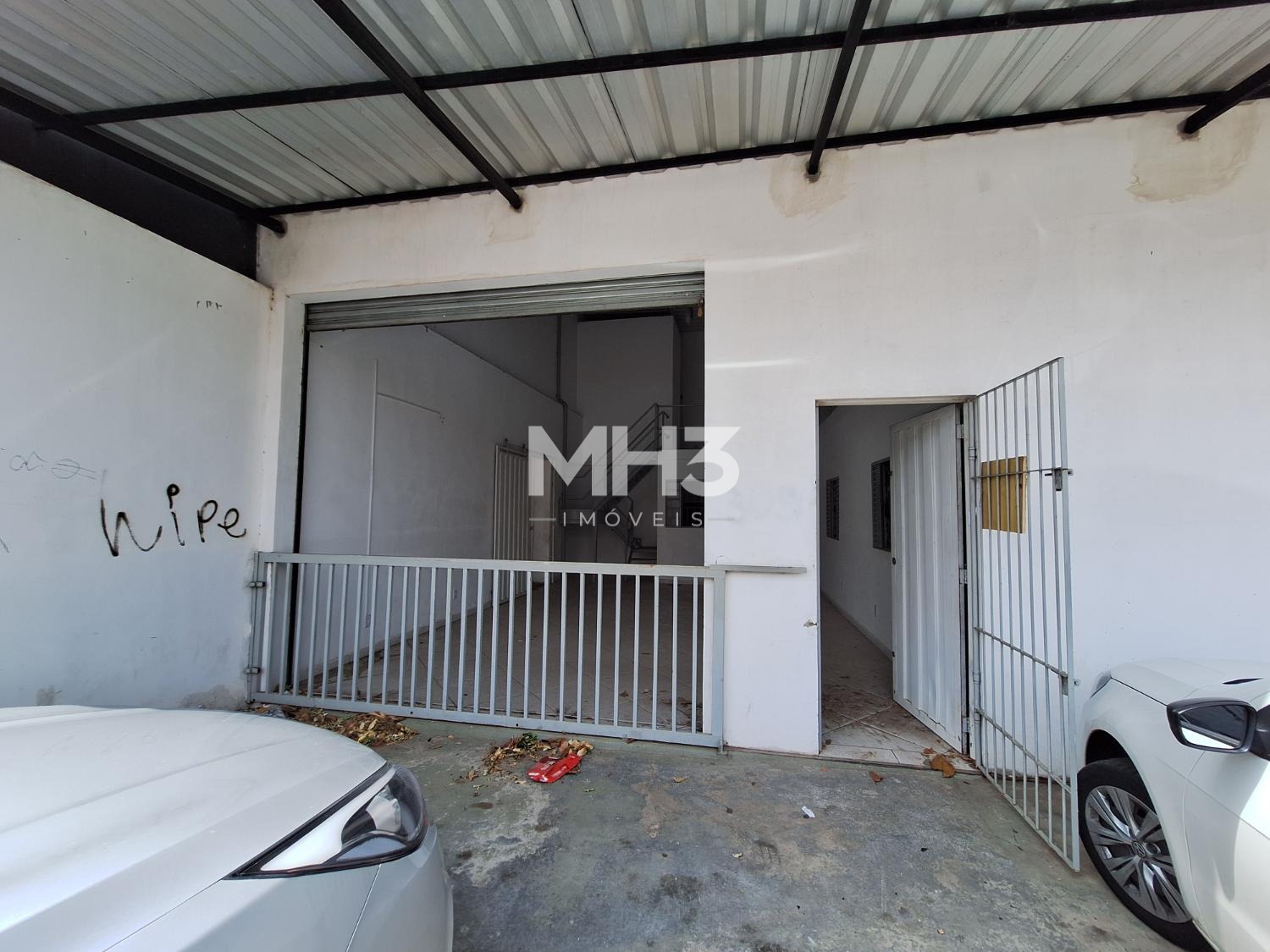 Uma parede do chão ao teto que divide outro galpão, este com aproximadamente 100m², PD de 6m², 2 banheiros (fem/masc), portão eletrônico de acesso para VUC, pequeno quintal e outro portão de ferro para acesso da rua, podendo ficar o portão da rua fechado e do galpão aberto, com privacidade.