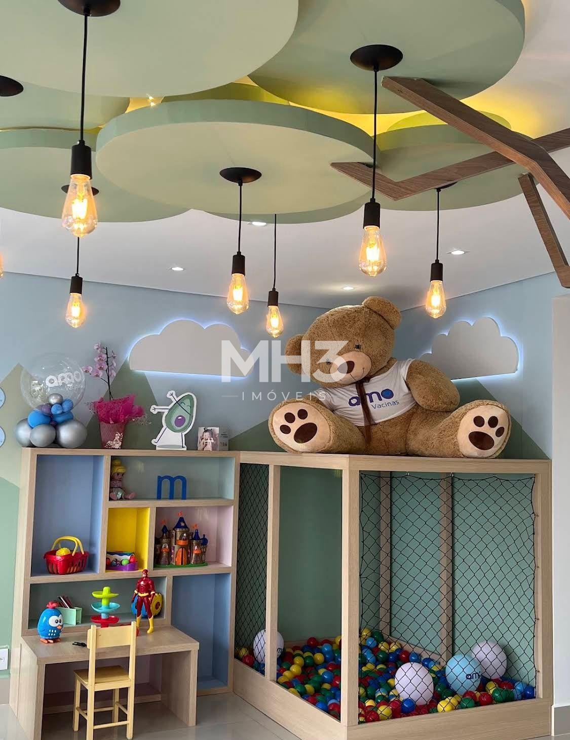 • Recepção ampla e humanizada (carrossel de cupcake, piscina de bolinhas, urso TED)